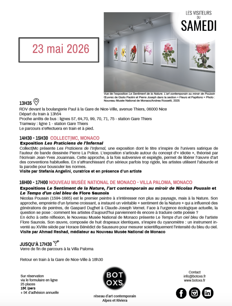 La réservation se fait par paiement en ligne sur le site botoxs.fr ou par mail à hanna@botoxs.fr : 15 euros puis 5 euros d’adhésion à payer sur place le jour de la visite.