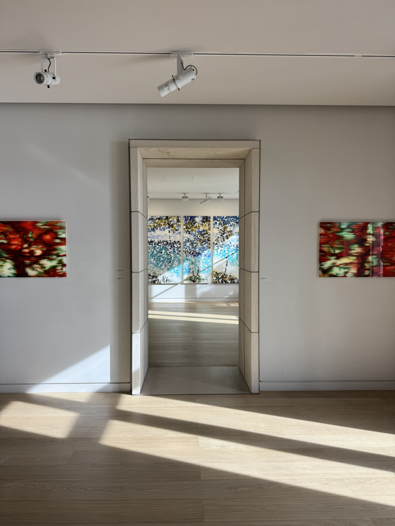 L’œuvre de Carole Benzaken s’écoute autant qu’elle se regarde. Il n’est donc pas surprenant que l’exposition, présentée au Centre d’art La Malmaison de la Ville de Cannes, se déploie étage après étage selon un rythme musical, où chaque niveau correspond à une take. Des œuvres issues de séries différentes, parfois séparées par des années, entrent ainsi en résonance et se répondent, créant des harmonies nouvelles et éphémères, propres au temps de l’exposition. Cette scénographie fait émerger des ambiances variées, comme autant de portes ouvertes sur des mondes distincts. Entre figuration et abstraction, Carole Benzaken explore depuis longtemps une peinture de la tension : entre structure et improvisation, rigueur et liberté. Nourrie de références au cinéma, à la pop culture et à l’histoire de l’art, son œuvre refuse les classifications figées et privilégie les circulations, les échos et les connexions multiples.