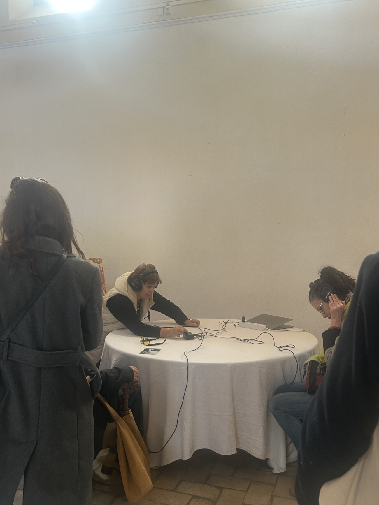 Au Centre de la photographie de Mougins, des fragments sonores circulent et résonnent dans l’espace d’exposition. Au Suquet des Artistes, des spectrogrammes issus des sons captés à l’Espace de l’Art Concret sont rétroprojetés, laissant une trace visuelle du passage des visiteurs. L’œuvre révèle ainsi la richesse sonore des gestes ordinaires et redonne à la marche une place centrale et sensible.
